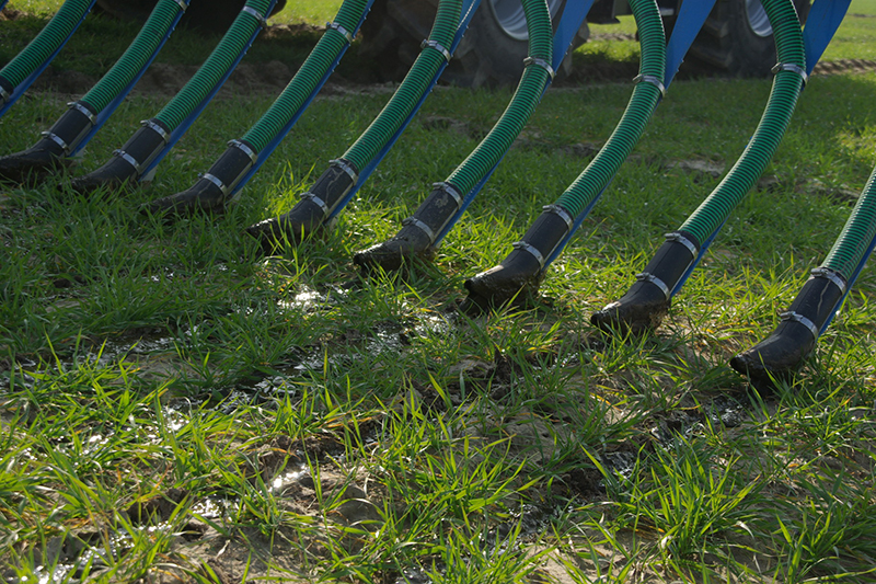 Auf bestelltem Ackerland ist der Schleppschlauchverteiler gemäß Düngeverordnung der Mindeststandard, bei dem die Ammoniakverluste bereits deutlich reduziert werden. Die Dünger sollten gut in den Boden infiltrieren können oder von vornehinein mit Hilfe von injizierenden Applikationsgeräten, wie dem Schleppschuhverteiler oder Scheibeninjektor, ausgebracht werden. Da Wirtschaftsdünger keine standardisierten Dünger sind, schwanken die Nährstoffgehalte sehr stark.