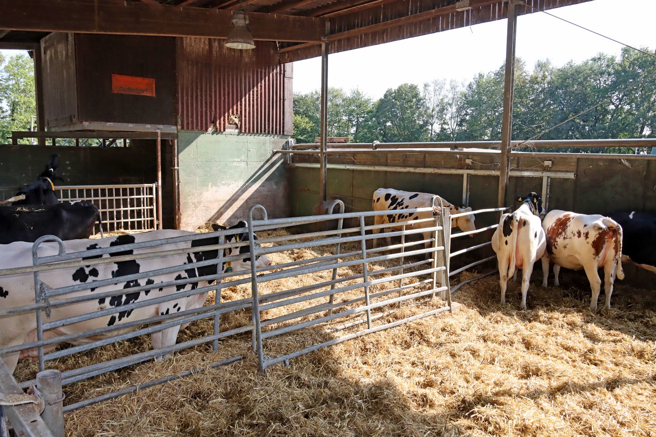 Im Abkalbestall warten die hochtragenden Kühe in Ruhe auf die Geburt ihrer Kälber.