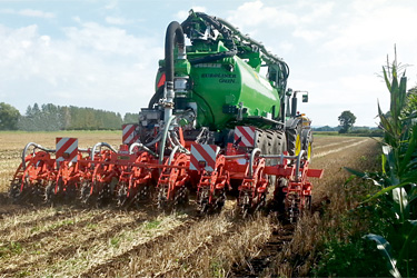 Text: Schleppschlauchverteiler werden auf Grünland und Ackerflächen eingesetzt.