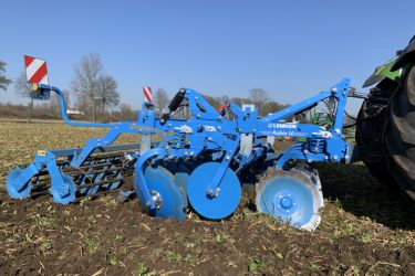 Text: Mit einfachen Maßnahmen ,wie der Montage von anderen Scharen, wird der Terrano von Horsch auch für spezielle Anforderungen wie dem flachen, ganzflächigen Schneiden umgerüstet.