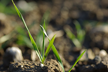 Text: Ausfallgetreide nimmt auf unbearbeiteten Flächen Stickstoff aus der Krume auf. Genauso wie bei frisch bestellten Flächen ist jetzt Wasser für die Nährstoffaufnahme dringend nötig
