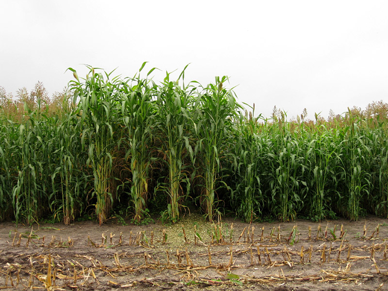 Text: 2009 konnten mit Hirse (Sorghum) im Zweitfruchtanbau hohe Trockenmasseerträge erzielt werden