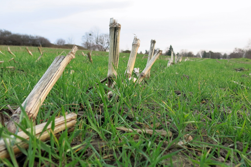 Text: Früh gehäckselte und bereits wieder ausschlagende Zwischenfrucht.
