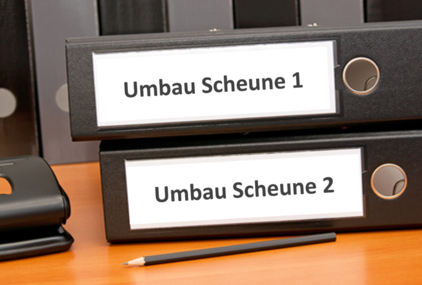 Bei einem Umbau oder Neubau sind viele neue Dokumente im Büro zu erwarten: erste eigene Skizzen, Architektenzeichnungen, Bauvoranfrage, Umnutzungsantrag, Förderantrag, Beratungsempfehlung, Notizen und Ideen. Und viele mehr. Wer die Unterlagen sofort etwas sortiert, hat es im Laufe des Projektes leichter, die Unterlagen abzulegen und wiederzufinden.