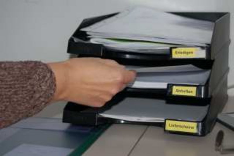 In der Stapelbox sollten maximal 7 einzelne Vorgänge liegen - am besten in Sichthüllen. Deponieren Sie wirklich nur wichtige Unterlagen, die tatsächlich noch bearbeiten müssen. Sollen die Unterlagen etwas vor sortiert werden, nutzen Sie mehrere Stapelboxen und beschriften diese. Zum Beispiel: Rechnungen prüfen, Rechnungen überweisen, Erledigen, Fragen an den Chef, Eilt.
