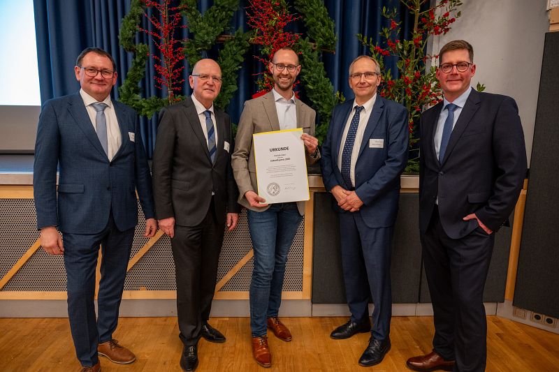 Der Zukunftspreis der Landwirtschaftskammer Nordrhein-Westfalen für Arbeitnehmerinnen und Arbeitnehmer in den grünen Berufen geht in diesem Jahr an Dominik Unkel aus Issum. Den Preis überreichte ihm Vizepräsident Martin Dahlmann während der Hauptversammlung der Landwirtschaftskammer am Freitag, 12. Dezember, in Bad Sassendorf im Kreis Soest. Die Ehrung besteht aus einer Urkunde und einem Geldpreis.