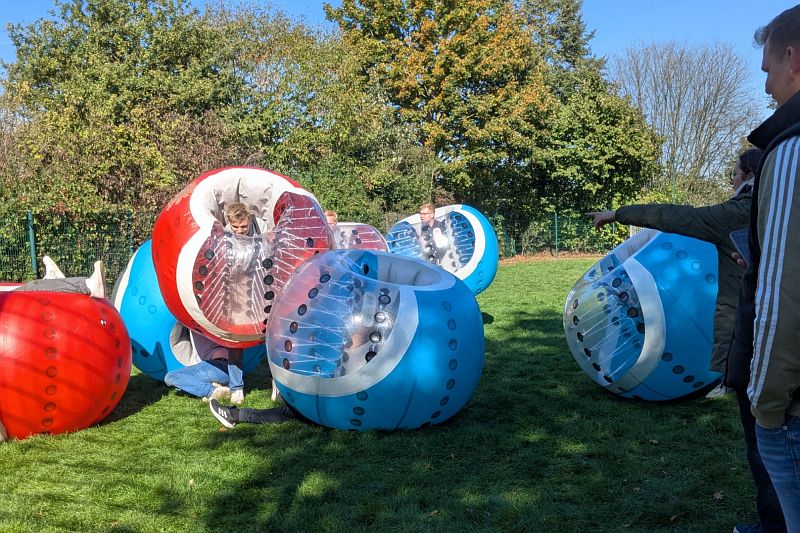 Richtig spannend wurde es dann beim Bubble-Ball-Spiel. Ohne Taggeln lief nun nichts. Manche Spielerinnen und Spieler behielten auch „Kopf unter“ den Ball im Blick und die beiden Schiedsrichter sorgten nicht nur für gute Stimmung, sondern auch immer wieder für den Ball auf dem Platz. „Dran“ war das Motto – und das Anfeuern der Teams, die es bis zum Viertel-Finale geschafft haben.